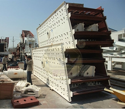 圆振筛利用普通电机拖动偏心轴,使筛体沿激振力方向做周期性 往复振动,物料在筛面做圆运动,从而达到筛分目的。圆振筛由振动源、筛体、筛网、减震装置、底座等组成。