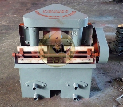 1)、槽体部分,以钢板焊接制造的槽1,其中利用叶轮搅拌同时对矿浆进行冲气;为了调正槽内浆液面及被刮出泡沫层的厚度,利用两槽壁板制成中间槽15,其中安装矿浆液面调节器5,在槽内罩盖14上面安装孔板17,用来防止矿浆的混乱运动对泡沫区的影响,同时也可以防止脉石被机械带到精矿中去。并且在槽体部置有衬盆6,防止磨损槽底,衬盆可以更换,槽底外布置了有排矿口8,清洗时放水之用。矿浆流经壁板上的溢流口流进中间槽15和尾槽3,中间槽的下部与槽壁下部罩盖14的导管进入下一个槽中,这样可以继续流经,浮选机的槽数全部,从给矿槽3流入,由尾矿1的排矿口8排出,槽体下部的前后置有进矿口16,便于改变工艺流程。